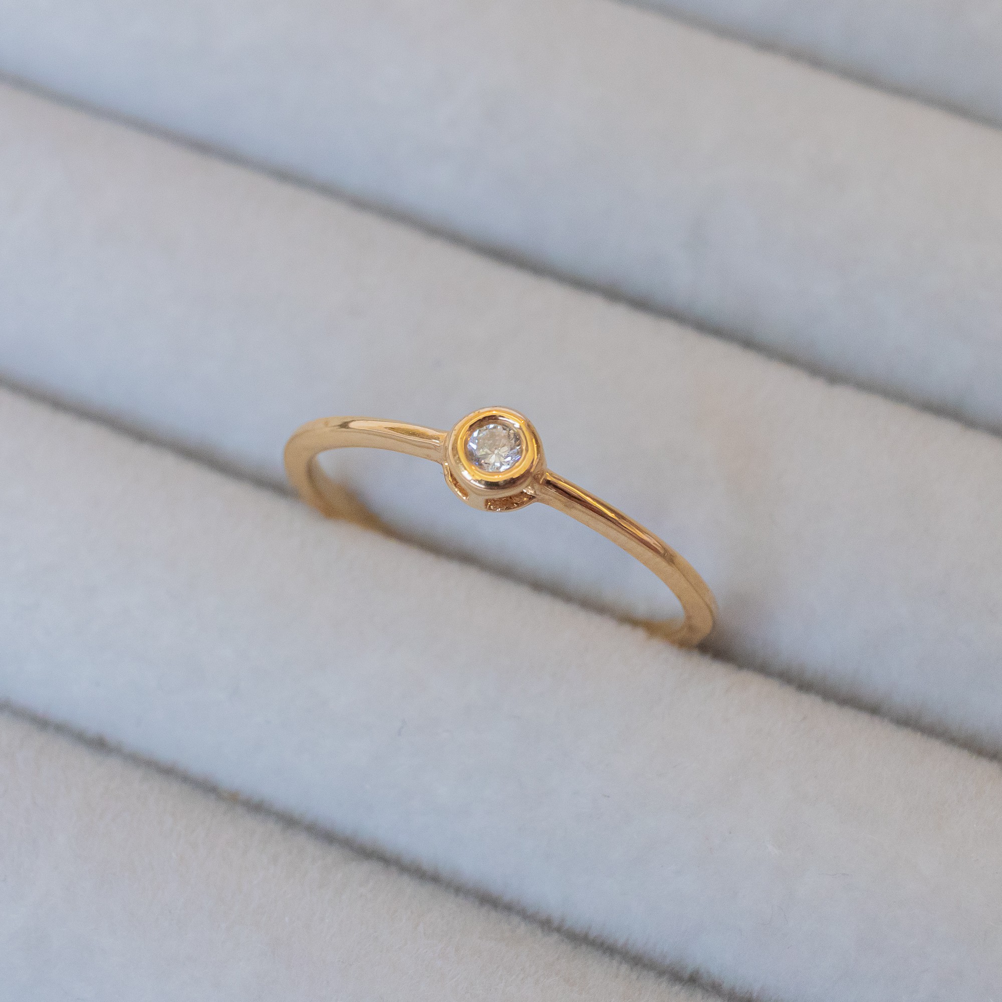 Anel ponto de luz é produzido a partir de ligas metálicas que são banhadas em ouro 18 quilates e possui um ponto de luz em zircônia.
